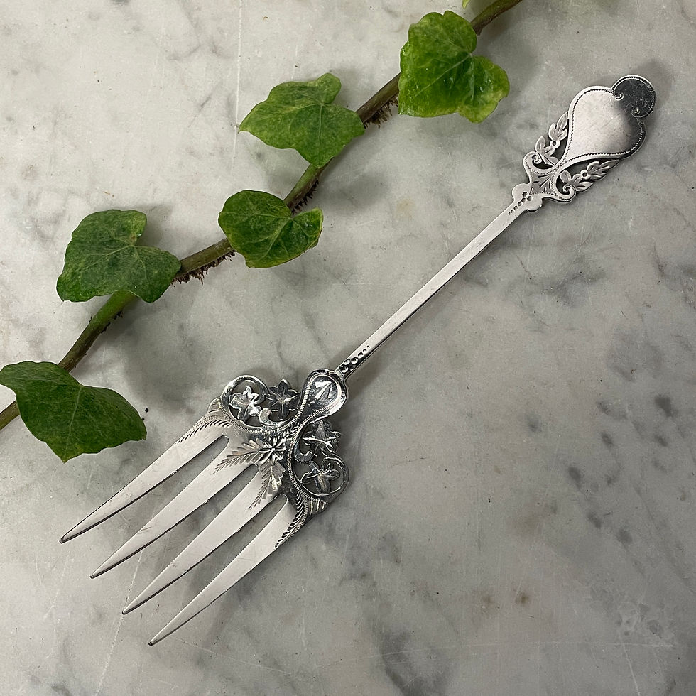 A large Victorian silver plated serving fork perfect for serving charcuterie or bread.